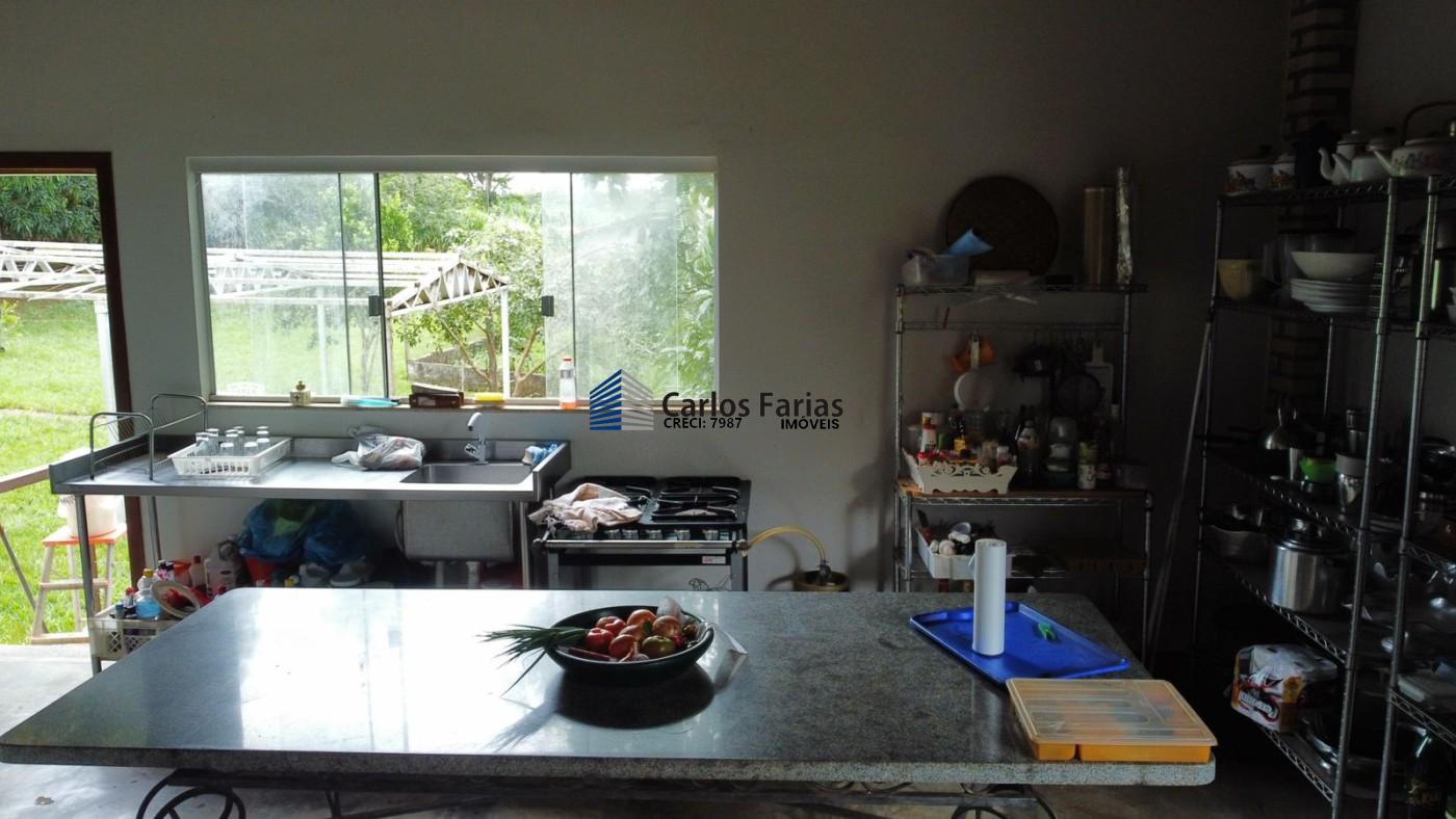 Casa sede com 240m, suíte, banheiro social, lavabo, sala copa e cozinha.