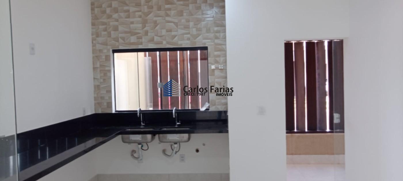 Casa nova com 210m² área construida e lote de 400m², projeto moderno e acabamento de primeira qualidade. Com 03 (três) suítes, sendo a suíte de casal com 02 (duas) pias, sala bem arejada com dois ambiente e pé direito duplo, 04 (quatro) banheiros, sendo o social na área gourmet, todos com boxe em blindex, piso em porcelanato, cozinha espaçosa com 02 pias e bancada em granito, área de serviço destacada com a parede em madeira, área gourmet conta com bancada em Granito e churrasqueira. quintal amplo gramado com espaço para piscina. A Garagem é coberta conta com 02 (duas) vagas, estação de tomada para carro elétrico tudo de muito bom gosto. **Lazer do condomínio** Campo de futebol Piscina Adulto com raia e Infantil Salão de festas para 100 pessoa com ar central Salão gourmet Quadra de beach tênis Salão de jogos Sauna com spa Academia completa Espaço gourmet com churrasqueira forno para pizza Playground Quadra poliesportivas Banheiros e vestiários Jardim.